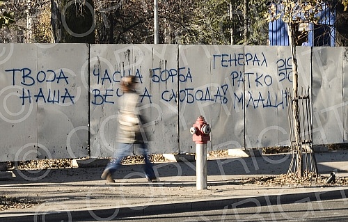 Graffiti in Belgrade on the occasion of the Hague verdict, General Ratko Mladic. Grafiti u Beogradu povodom presude u hagu generalu Ratku Mladicu.