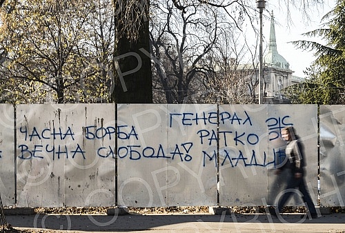 Graffiti in Belgrade on the occasion of the Hague verdict, General Ratko Mladic. Grafiti u Beogradu povodom presude u hagu generalu Ratku Mladicu.