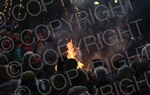 The traditional burning of the Yule log in front of the St. Sava Temple on Christmas Eve.