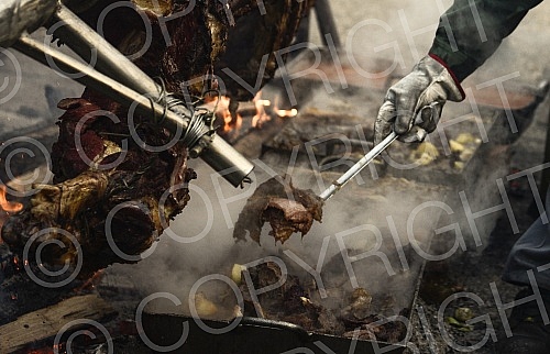 On the occasion of Orthodox New Year at Dorcol beeve was roasted. Povodom Pravoslavne Nove godine na Dorcolu je pecen vo na raznju.