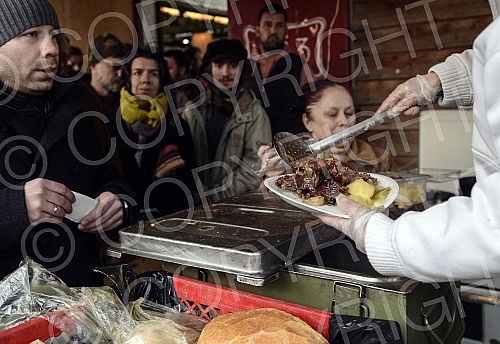 On the occasion of Orthodox New Year at Dorcol beeve was roasted. Povodom Pravoslavne Nove godine na Dorcolu je pecen vo na raznju.