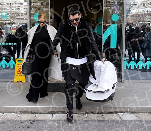 Serbian singer Natasa Bekvalac emerged from the maternity ward with daughter Katja and her husband Luka Lazukic.