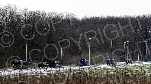 Police block access to Sport Center Kovilovo due to deferred handball match of Serbia vs. Serbia.