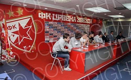 Konferencija povodom potpisavanja ugovora o saradnji izmedju FK Crvena Zvezda i 12 skola fudbala iz Srbije odrzana u medija centru FK Crvena Zvezda na stadionu `Rajko Mitic`.