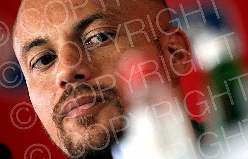 Press conference of Wes Brown in Belgrade. Pres konferencija Ves Brauna, bivseg fudbalera Mancester junajteda.