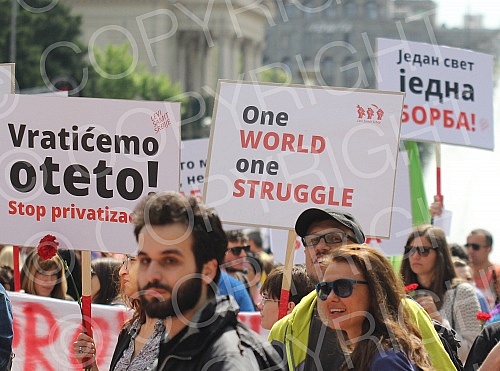 Na Trgu Nikole Pasica povodom Medjunarodnog praznika rada okupljanje clanova Saveza samostalnih sindikata Srbije i Ujedinjenih granskih sindikata "Nezavisnost".