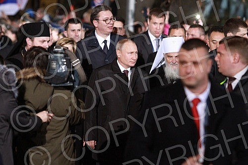 Arrival of Vladimir Vladimirovich Putin (Vladimir Putin) to Serbia. In front of Temple St. Sava.