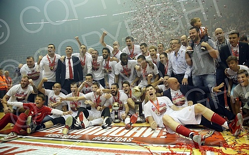 Treca utakmica finala plejofa Kosarkaske Super Lige Srbije izmedju KK Crvena Zvezda i KK Partizan odigrana u hali Pionir.