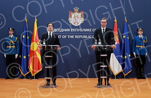 President of the Republic of Serbia Aleksandar Vucic meets with the President of the Republic of North Macedonia Stevo Pendarovski.