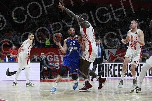 Match of Round 22 of Euroleague between BC Crvena zvezda vs BC Anadolu Efes Istanbul. Utakmica 22. kola Evrolige izmedju KK Crvena zvezda i KK Anadolu Efes.