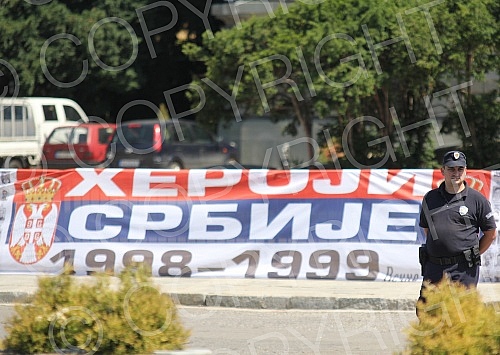 Okupljanje clanova i simpatizera Srpske radikalne Stranke ispred Skupstine Srbije u Beogradu. Povodom najave nevladinih organizacija da ce obeleziti godisnjicu u zlocina u Srebrenici.