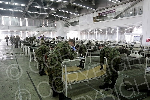 Military beds set up in the halls 1 and 4 of the Belgrade Fair for people with milder sympoms of coronavirus. Vojni kreveti postavjeni u halama 1 i 4 Beogradskog sajma za ljude koji imaju blaze simtome korona virusa.