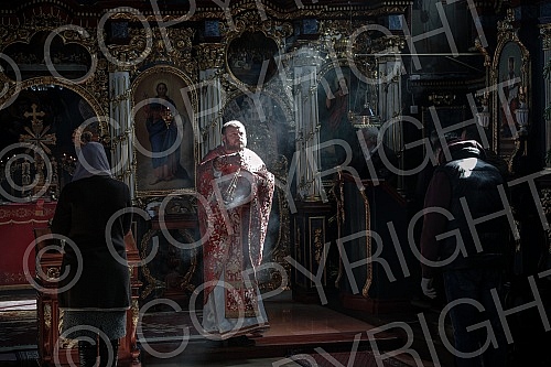 Morning liturgy at a church in a settlement Jacovo. Jutarnja liturgija u crkvi u naselju u Jakovu.