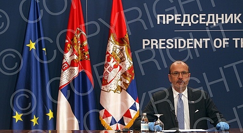 At the Palace of Serbia, President of Serbia Aleksandar Vucic met with ambassadors of EU member states in Serbia.U Palati Srbija predsednik Srbije Aleksandar Vucic sastao se sa ambasadorima zemalja clanica EU u Srbiji.