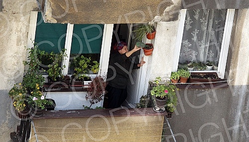 Stanovnici Beograda na terasama i krovovima zgrada tokom policijskog casa koji je poceo u peak u 18.00 casova, a zavrsava s