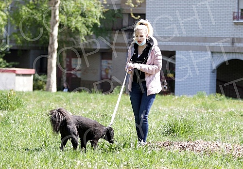 Singer Sara Reljic with brother Filip walking dogs (paparazzo).