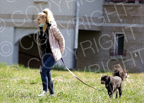 Singer Sara Reljic with brother Filip walking dogs (paparazzo).