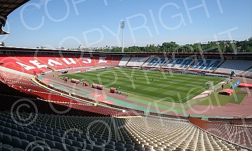 Training match between FC Red Star and FC Graficr played at the Rajko Mitic stadium. Trening utakmica FK Crvena zvezda i FK Graficar odigrana na stadionu Rajko Mitic.