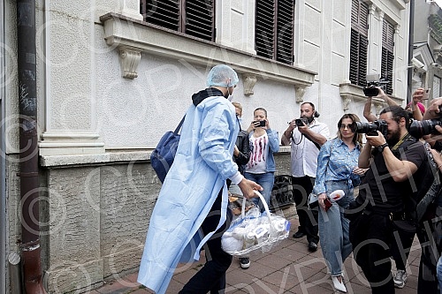 Bogdana Razanatovic left the maternity hospital with her son Zeljko accompanied by her husband Veljko Raznatovic and mother-in-law Svetlana Raznatovic - Cece.