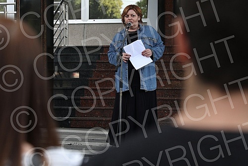 In front of the Ministry of education, celebrities read poetry by Desanka Maksimovic.