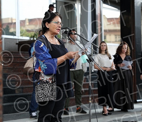 In front of the Ministry of education, celebrities read poetry by Desanka Maksimovic.