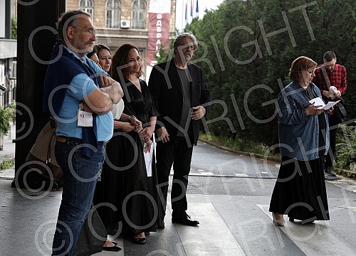 In front of the Ministry of education, celebrities read poetry by Desanka Maksimovic.