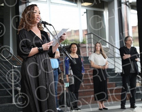In front of the Ministry of education, celebrities read poetry by Desanka Maksimovic.