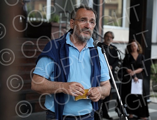 In front of the Ministry of education, celebrities read poetry by Desanka Maksimovic.