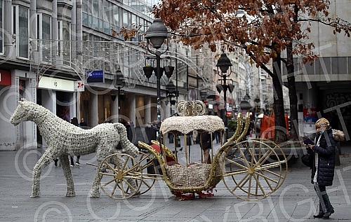 Installation of New Year's lighting in Knez Mihailova street.