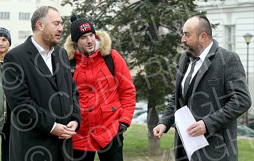 Dveri Vice President Ivan Kostic and Milovan Jakovljevic held a press conference on "Emergency measures to save the Serbian economy and agriculture" in front of the Ministry of Economy building.