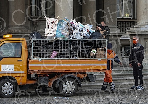 A Christmas tree decorated in front of the City assembly by activists of the One in five million movement, the let's defend Kosutnjak initiative, the New party and the Green party in the action "Decorating the Christmas tree with garbage" was removed