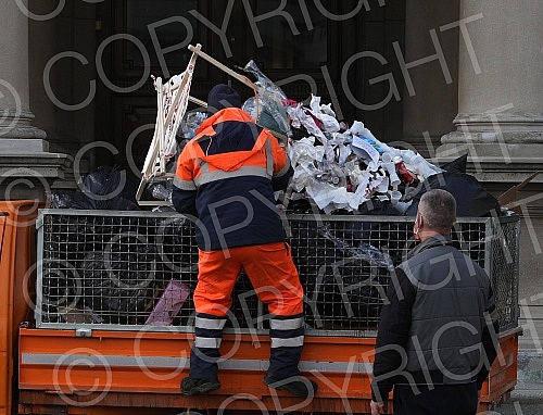 A Christmas tree decorated in front of the City assembly by activists of the One in five million movement, the let's defend Kosutnjak initiative, the New party and the Green party in the action "Decorating the Christmas tree with garbage" was removed