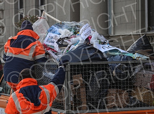 A Christmas tree decorated in front of the City assembly by activists of the One in five million movement, the let's defend Kosutnjak initiative, the New party and the Green party in the action "Decorating the Christmas tree with garbage" was removed