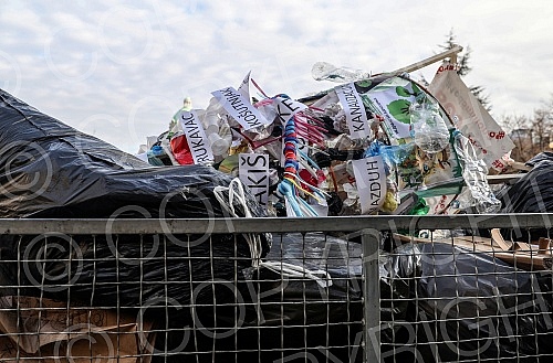 A Christmas tree decorated in front of the City assembly by activists of the One in five million movement, the let's defend Kosutnjak initiative, the New party and the Green party in the action "Decorating the Christmas tree with garbage" was removed