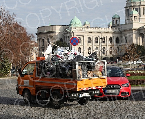 A Christmas tree decorated in front of the City assembly by activists of the One in five million movement, the let's defend Kosutnjak initiative, the New party and the Green party in the action "Decorating the Christmas tree with garbage" was removed