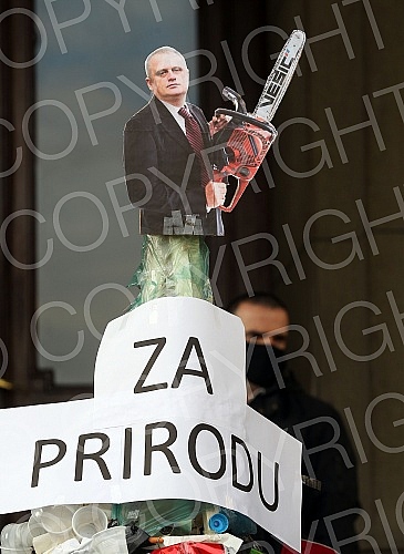 In front of the Belgrade city assembly, activists of the One in five million movement, the Let's defend Kosutnjak initiative, the New party and the Green party organized the action "Decorating the Christmas tree with garbage".