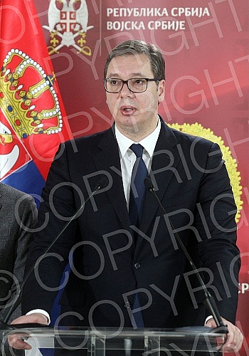 At the Topcider Guard House, Serbian President Aleksandar Vucic, Defense Minister Nebojsa Stefanovic and Chief of General Staff Milan Mojsilovic attended a presentation on the results of the analysis of the state of functional and operational capabil