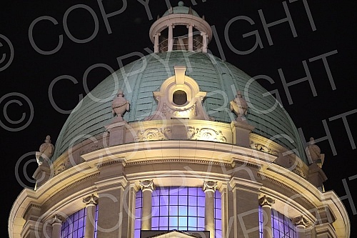 Exterior of the House of the National Assembly of Serbia located on Nikola Pasic Square in downtown Belgrade capital of the Republic of Serbia.