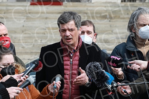 In front of the House of the National Assembly, the Independent Journalists' Association of Vojvodina, the Independent Association of Journalists of Serbia, the Media Association, the Online Media Association and the Business Association of the Assoc