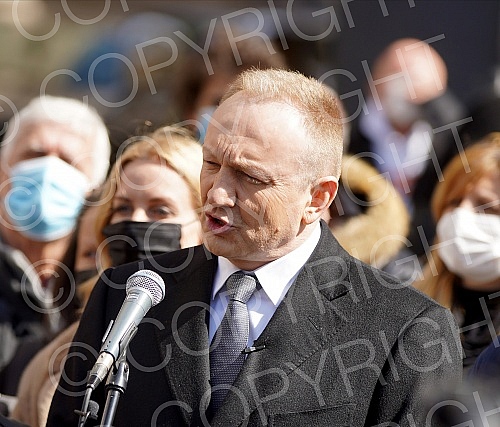 Predsednik Stranke slobode i pravde Dragan Djlas odrzao je konferenciju za novinare ispred Prvog osnovno