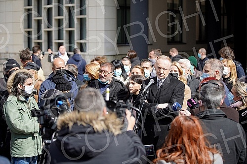 The President of the Party of freedom and justice, Dragan Djlas, held a press conference in front of the First basic public prosecutor's office.