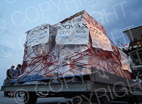 Minister of European integration Jadranka Joksimovic welcomed the first contingent of 57,000 doses of AstraZeneca vaccines through the COVAX mechanism at the "Nikola Tesla" airport.