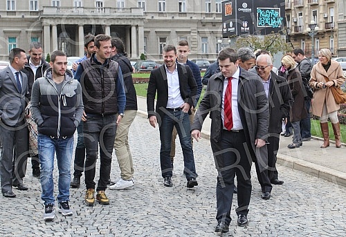 Sadnja drveta u Pionirskom parku povodom dana "Zelenila Beograd" koju su obavili fudbalski reprezentativci Vukasin Jovanovic, Marko Grujic, Ivan Saponjic i Andrija Zivkovic zajedno sa Nikolom Nikodijevicem - predsednikom Skupstine grada i Slobodanom