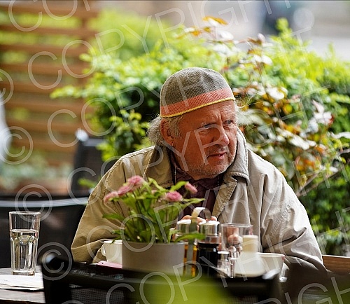 Glumac Zijah Sokolovic uprkos prohladnom vremenu u basti restorana Sumatovac pije kafu.