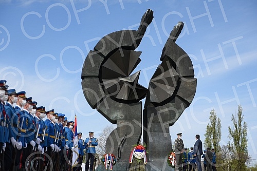State wreath-laying ceremony and state and military honors to mark Holocaust Remembrance Day, genocide and other victims of World War II fascism at the Monument to the Victims of World War II Genocide within the former Nazi death camp complex, "Staro