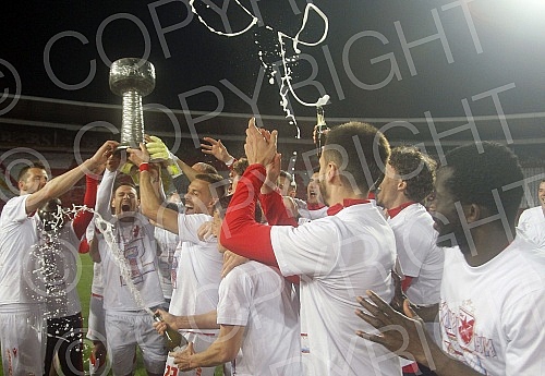 Fudbaleri Crvene zvezde proslavljaju osvajanje cetvrte titule u nizu.
