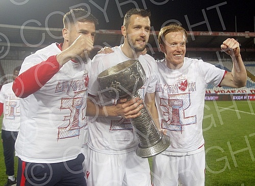 Fudbaleri Crvene zvezde proslavljaju osvajanje cetvrte titule u nizu.