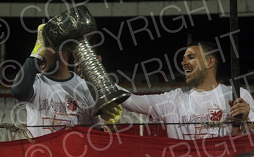 Fudbaleri Crvene zvezde proslavljaju osvajanje cetvrte titule u nizu.