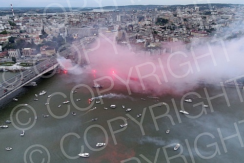 Spectacular celebration of the 32nd title of Serbian champion, fans and football players of FC Red Star from a bird's eye view.