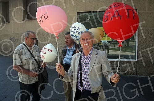 The performance "We give them vitamins, they respect the Constitution and the law" in front of the building of the Presidency of Serbia was organized by the Association of Trade Unions of Retired Military Personnel of Serbia.